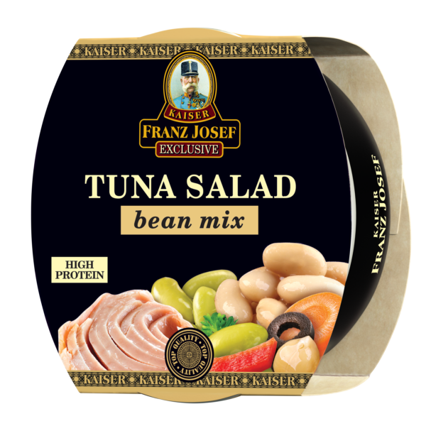 Franz Josef Kaiser – Tuňákový salát FAZOLOVÝ MIX je chutný a lehce stravitelný. Je vhodný na svačinu, lehký oběd, nebo jako zdravé a praktické jídlo na cesty. Jedinečná chuť tuňáka je skvěle doladěna luštěninami, kvalitní zeleninou.